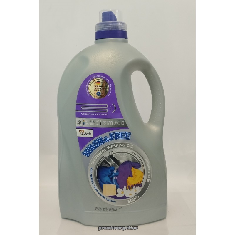 Акція-10%Гель д/прання Wash&Free універсал з госп.милом з аром. Жасміна та лаванди /5л (Німеч.)