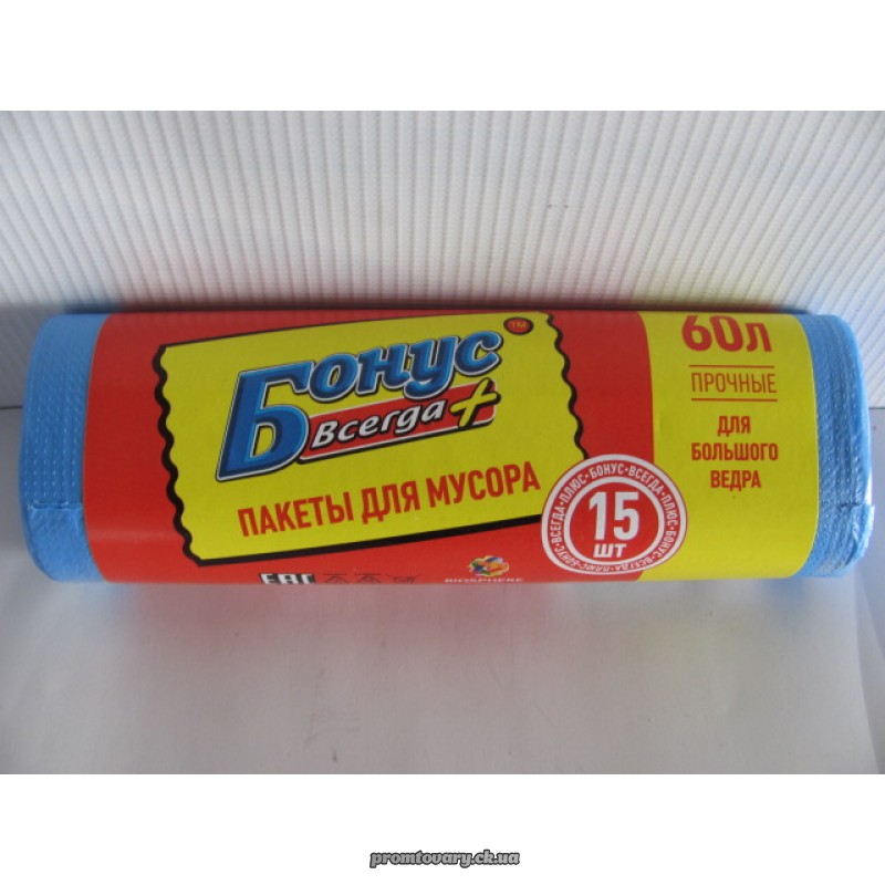 Пакет д/сміття Бонус 60л. сині /15шт.