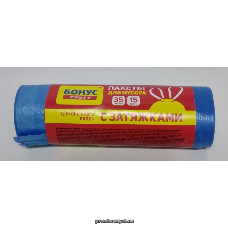 АкціяПакет д/сміття Бонус 35л. сині /15шт.з затяжками