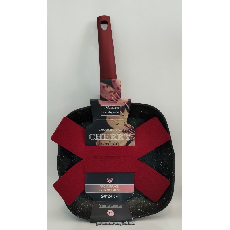 АкціяСковорода-гриль алюм. Pepper PR-2110-24 Cherry покр. Lava-stone 24см*24см без кришки (пресов. алюм, антиприг.покр) /шт