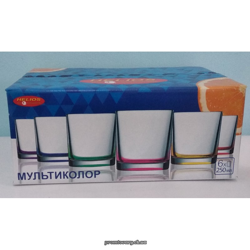 Стакан набір Мультиколор 250мл низькі /6шт 8381 (кольор.дно)